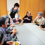 食欲の秋。デイサービスと幸の家合同で焼きりんごを作りを行いました。